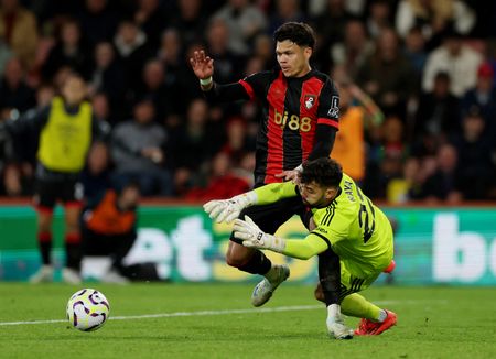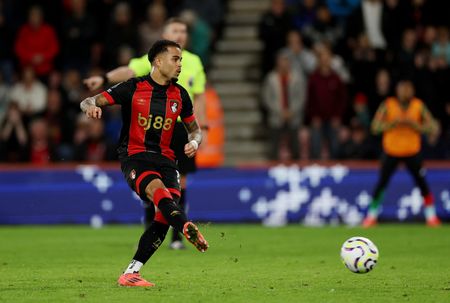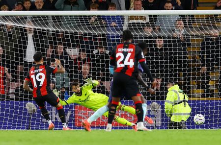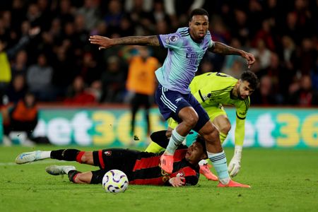 BOURNEMOUTH, England (Reuters) -A brilliantly-worked goal by Ryan Christie and a Justin Kluivert penalty gave Bournemouth a shock 2-0 Premier League win at home to 10-man Arsenal on Saturday, with Gunners defender William Saliba shown a straight red card in the first half.
