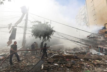 JERUSALEM/BEIRUT/CAIRO (Reuters) -Israel struck what it said were Hezbollah arms facilities in southern Beirut on Saturday after the Lebanese armed group fired rockets into northern Israel and a spokesman said a drone was launched at Prime Minister Benjamin Netanyahu’s holiday home.