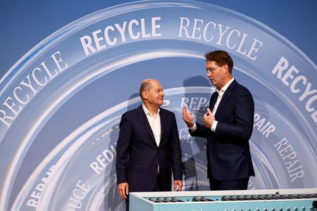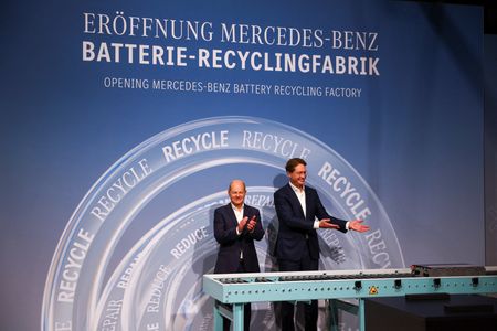 KUPPENHEIM, Germany (Reuters) -German automakers should not be afraid of competition from China, Chancellor Olaf Scholz said on Monday at the opening of Mercedes-Benz’s first battery recycling plant, an investment he described as part of Germany’s new industrial policy agenda.