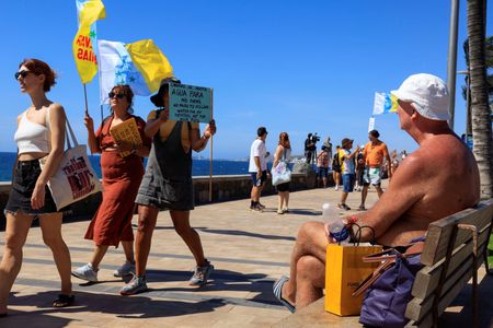 GRAN CANARIA, Spain (Reuters) – Thousands of people protested in holiday resorts in Spain’s Canary Islands on Sunday against over tourism which they say prices local people out of the housing market.