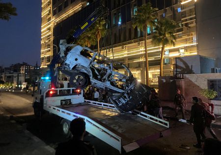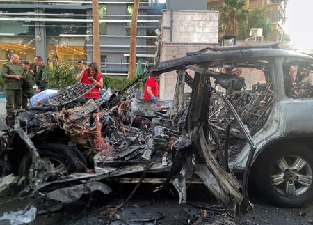(Reuters) -At least two people were killed and three others injured on Monday in an apparent guided missile attack on a car in the Mazzeh area of Damascus, Syrian state television said, quoting a military source.