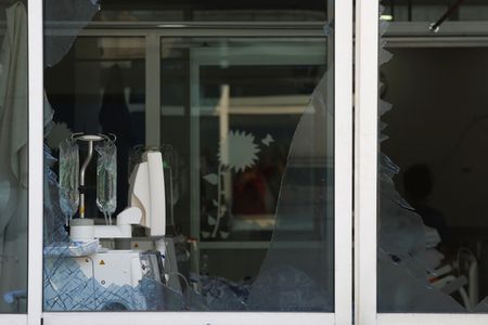 He said debris, likely from heavy ammunition, damaged the hospital’s solar panels and front facade and shattered its windows.