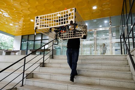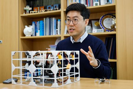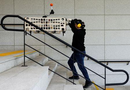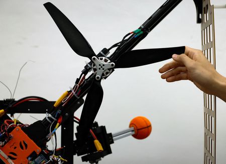 SEOUL (Reuters) – South Korean researchers have developed a transport drone flying on multiple flexible rotors that self-correct to stay level in flight and can be used as a “flying shopping cart” to carry goods over uneven terrain such as stairs.