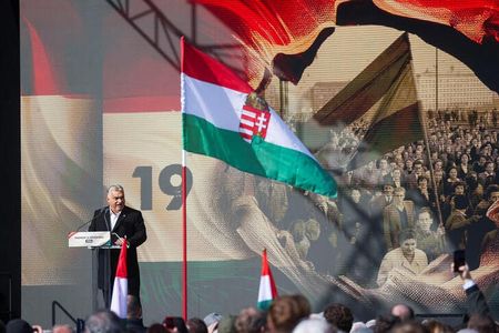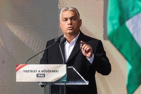 Orban, who faces the most acute threat to his 14-year rule as an opposition party led by a political newcomer has surged in the polls, spoke to supporters on the anniversary of the revolt against Soviet domination that was crushed by the Red Army.