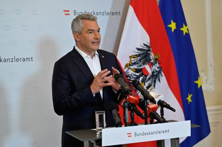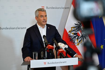 VIENNA (Reuters) – The road ahead in coalition talks between Austria’s two main centrist parties will be long and most likely “very rocky” at times, conservative Chancellor Karl Nehammer, who is leading the talks, said on Friday as they began.