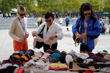 PRISTINA (Reuters) – On a sunny October day in Pristina, women line up at a stall to donate bras to be turned into bags sold to raise money for those with breast cancer, as part of a project launched by artist Ermira Murati to raise awareness among Kosovo women.
