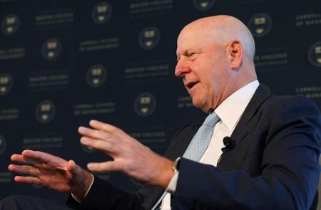 LONDON (Reuters) – The CEOs of Goldman Sachs and Morgan Stanley said on Tuesday they expected corporate dealmaking to pick up in 2025, while the CEO of Apollo Global Management said he expected a presidential victory by Donald Trump would spur more deals.