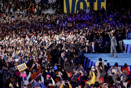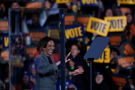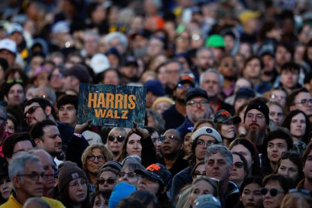 “There is nothing more important than this election,” said Rogers, one of a number of celebrities who both campaigns have used to appeal to voters, as she warmed up an outdoor crowd in 50°F (10°C) temperatures.