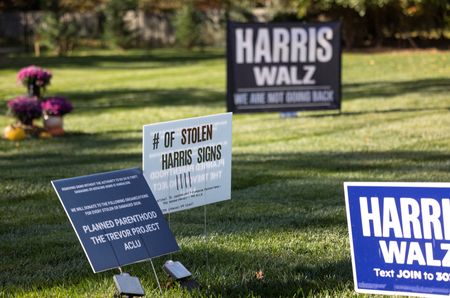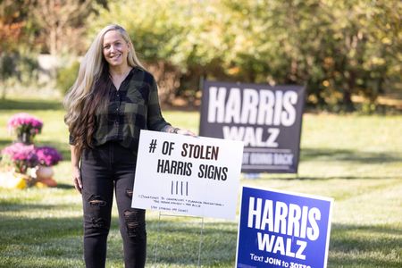 WASHINGTON (Reuters) – Tired of her Kamala Harris signs disappearing from her Springfield, Missouri, front yard, Laura McCaskill taped a tracking device to one to see where it might end up.