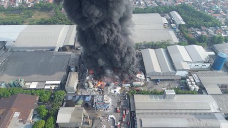Footage from Metro TV showed flames and billowing black smoke coming out of a building in the centre of an industrial complex in Bekasi, a city on Jakarta’s eastern edge. The report said roads had been closed around the factory.
