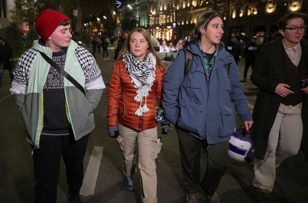 “I want to show that I am one of many tens of thousands of people who are standing up in the fight for democracy and freedom for the Georgian people,” Thunberg told Reuters.