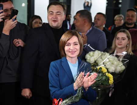 CHISINAU (Reuters) -Moldova’s pro-Western incumbent Maia Sandu claimed victory at Sunday’s closely-fought presidential election, defeating Alexandr Stoianoglo, her rival backed by the traditionally pro-Russian Socialist Party.