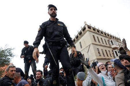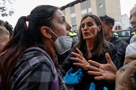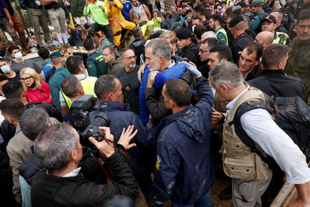 PAIPORTA, Spain (Reuters) -Hundreds of residents of a Valencia suburb badly hit by last week’s deadly floods protested on Sunday during a visit by Spanish King Felipe, Queen Letizia, and Prime Minister Pedro Sanchez, with some throwing mud at them.