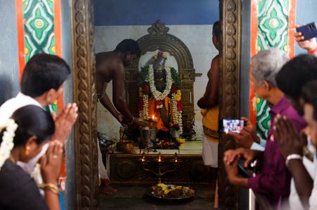 The temple ceremony in Thulasendrapuram, in the state of Tamil Nadu, was organised by local villagers and attended by more than a dozen of them and a few tourists.