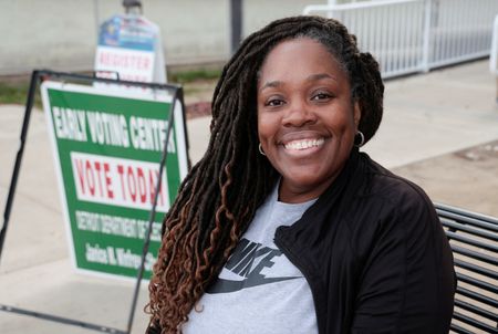 Stephanie Lopez Gilmore, 39, who works at a wellness and mental health center in Detroit, said she was voting for Harris to protect women’s reproductive rights.