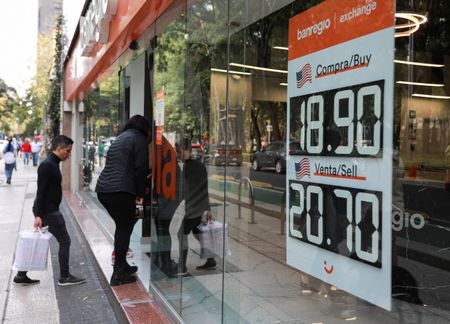 MEXICO CITY (Reuters) -The Mexican peso sank against the U.S. dollar as results in the U.S. presidential election rolled in, extending a streak of volatility which has hit the currency in recent days.