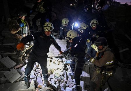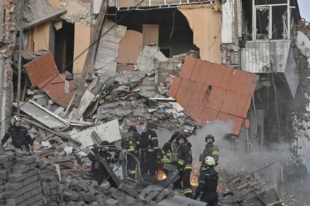 (Reuters) -A Russian guided bomb attack on Ukraine’s southeastern city of Zaporizhzhia on Thursday killed four people and wounded 33, destroying houses and damaging an oncology centre, officials said.