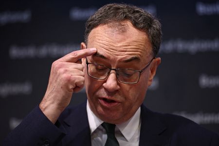 LONDON (Reuters) – Bank of England Governor Andrew Bailey stuck to his script outlining gradual interest rate cuts on Thursday, but Donald Trump’s White House return and threats to impose tariffs could force a hasty rewrite, economists said.