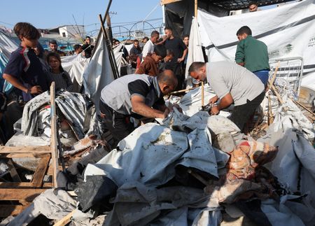 CAIRO/GAZA (Reuters) -A Gaza family sat weeping on Saturday over children killed by an Israeli strike as they were getting ready to play soccer, amid an intensified bombardment that Palestinian health authorities said has killed 44 people over the past 24 hours.