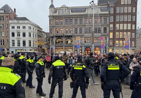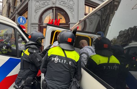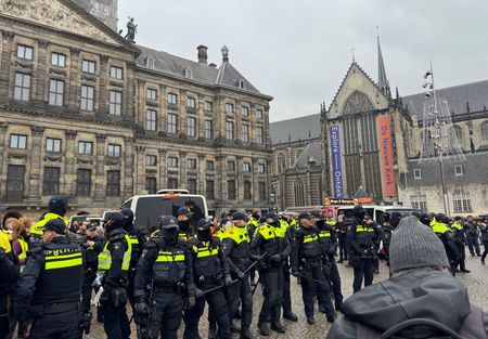 AMSTERDAM (Reuters) -Dutch police said they took away more than 300 pro-Palestinian protesters who ignored a ban on demonstrations in Amsterdam on Sunday and detained 50 more following clashes involving Israeli soccer fans last week.