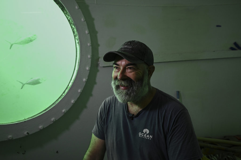 A shower.His home under the sea is attached through a vertical tube to another chamber perched above the waves, housing other members of his team — and providing a way for food and curious journalists to be sent down.The underwater chamber, meanwhile, provides a shelter for fish and acts as an artificial reef — providing an environmental benefit.”In the night, you can hear all the crustaceans,” he said.