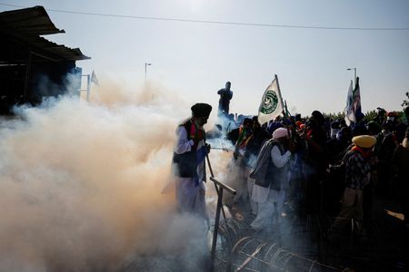 SHAMBHU, India (Reuters) – Indian police used tear gas and pepper spray against dozens of farmers who began marching from Punjab state along a key highway to Delhi on Friday to demand better prices for their crops.