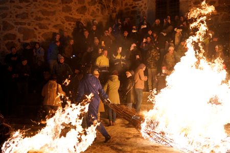 7, the inhabitants of Jarandilla de la Vera, a town in western Spain about 200 km (124 miles) west of Madrid, set bundles of twigs on fire and playfully hit each other on the legs in a festival known as Los Escobazos (the broom strikes).
