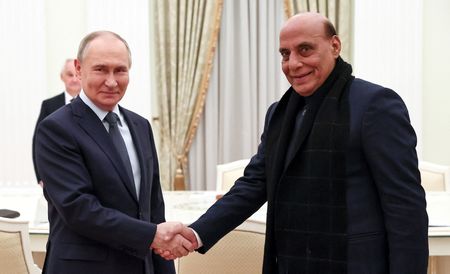 MOSCOW (Reuters) – Russian President Vladimir Putin met with Indian Defence Minister Rajnath Singh at the Kremlin on Tuesday, according to the Russian state-run RIA news agency, citing Kremlin spokesman Dmitry Peskov.