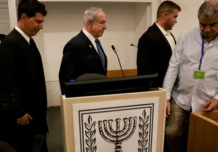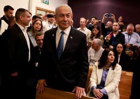 TEL AVIV (Reuters) -Israeli Prime Minister Benjamin Netanyahu took the witness stand for the first time on Tuesday in his long-running corruption trial, saying he was being hounded for his hawkish security policies.