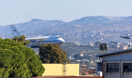 Satellite footage from Friday shows what appeared to be at least two Antonov AN-124s, among the world’s largest cargo planes, at the Hmeimim base with their nose cones open, apparently preparing to load up.
