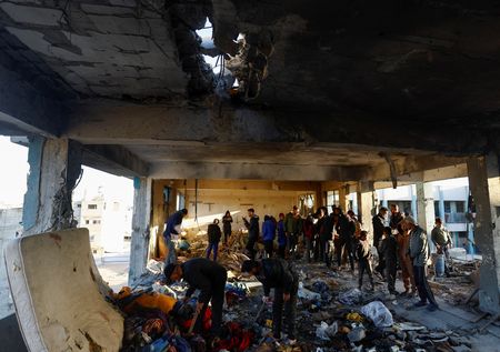 Palestinian health officials said on Sunday at least 20 people, including children, were killed in the strike at the school sheltering displaced families in the city in the southern Gaza Strip.