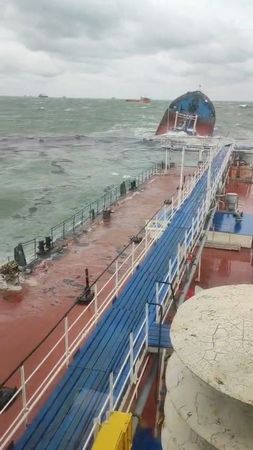 MOSCOW (Reuters) -Russian authorities sought to limit the damage on Monday from oil spilled into the Kerch Strait by two ageing tankers that were damaged during a heavy weekend storm, highlighting the environmental and insurance risks of Russia’s ‘shadow fleet’.