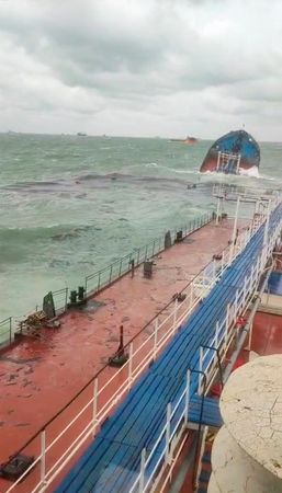 MOSCOW (Reuters) -Spilled oil has washed up along “tens of kilometres” of the Russian Black Sea coast after two tankers were badly damaged in a storm at the weekend, a regional official said on Tuesday, and state media said a third ship was now in trouble.