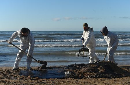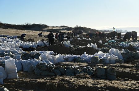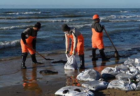 VITYAZEVO, Russia (Reuters) – Volunteers struggled on Friday to shovel up tons of sticky oil from Russia’s Black Sea coastline following what President Vladimir Putin has called an ecological disaster.