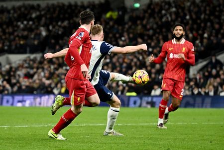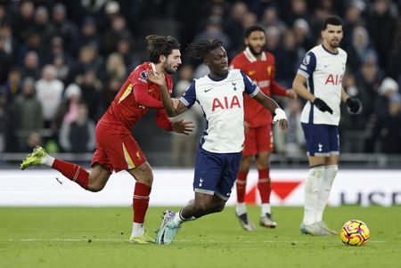LONDON (Reuters) -Liverpool extended their lead at the top of the Premier League to four points with a dominant but chaotic 6-3 win at Tottenham Hotspur on Sunday thanks to doubles from Luis Diaz and Mohamed Salah.
