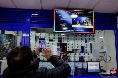 MADRID (Reuters) -Players with winning tickets in Spain’s huge Christmas lottery draw on Sunday celebrated with sparkling wine, cheers and hugs in a 200-year-old tradition that marks the beginning of the Christmas season.