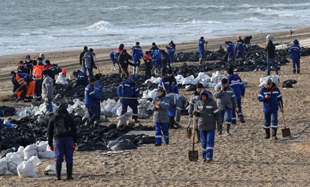 MOSCOW (Reuters) – Volunteers helping to clean up a major oil spill along Russia’s Black Sea coast appealed in a video released on Monday for President Vladimir Putin to urgently send federal aid, saying that they and local authorities were overwhelmed.