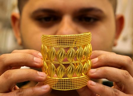 (Reuters) – Gold prices edged lower in subdued holiday-season trading on Monday, weighed down by a robust dollar and high U.S. Treasury yields as investors awaited clearer signals on the Federal Reserve’s monetary policy for 2025.