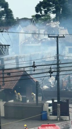 (Reuters) -A small plane carrying 10 people crashed into shops in the center of the tourist city of Gramado in southern Brazil on Sunday, killing everyone on board, state government officials said.