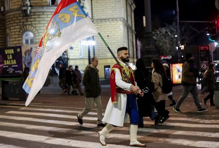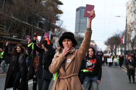 BELGRADE (Reuters) – Tens of thousands of people gathered in central Belgrade on Sunday to protest against President Aleksandar Vucic and his ruling Serbian Progressive Party (SNS), whom they blame for a railway station roof collapse last month that killed 15 people.