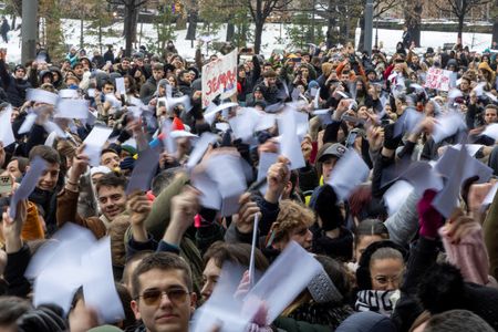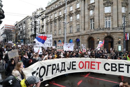 BELGRADE (Reuters) – Hundreds of university students rallied in Belgrade on Wednesday to protest the policies of President Aleksandar Vucic and his ruling Serbian Progressive Party (SNS), whom they blame for a railway disaster last month in which 15 people died.