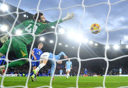 Reigning champions Manchester City enjoyed a morale-boosting victory by the same scoreline at Leicester City to move up to a distant fifth, 14 points behind Liverpool.