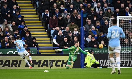LEICESTER, England (Reuters) -Manchester City won for the first time in five Premier League games on Sunday thanks to goals from Erling Haaland and Savinho for a 2-0 victory at Leicester City in manager Pep Guardiola’s 500th game in charge.