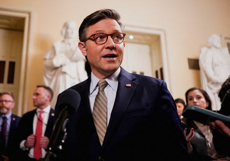 WASHINGTON (Reuters) -U.S. President-elect Donald Trump on Monday threw his support behind House Speaker Mike Johnson, who will stand for reelection to the top job this week with a slim Republican majority in the House of Representatives.