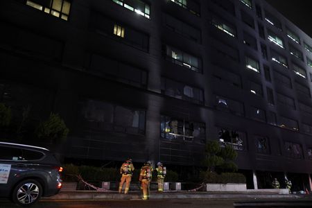 SEOUL (Reuters) -A fire and thick smoke engulfed an eight-story building in the South Korean city of Seongnam on Friday, sending 12 people to hospital with smoke inhalation, and about 30 people who had been trapped were safely rescued, the fire department said.