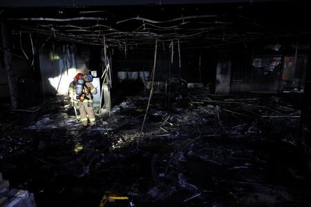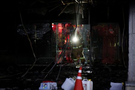 SEOUL (Reuters) -A fire and thick smoke engulfed an eight-story building in the South Korean city of Seongnam on Friday, sending 12 people to hospital with smoke inhalation, and about 30 people who had been trapped were safely rescued, the fire department said.