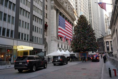 NEW YORK (Reuters) -Global stocks fell on Thursday as early gains faded, continuing the year-end downdraft into the first trading day of the new year, while the dollar hit a two-year high after economic data indicated the U.S.