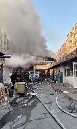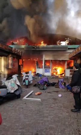 Huge dark billows of smoke hung over the market in the city’s Qiaoxi district, videos posted by other media on China’s Weibo microblogging site showed, along with large flames.