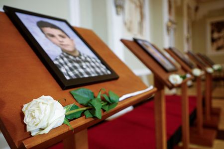 Protesters held banners that read “Your system is rotten” and “Your hands are bloody”. They attached roses with black ribbons to the fence in a gesture of mourning.