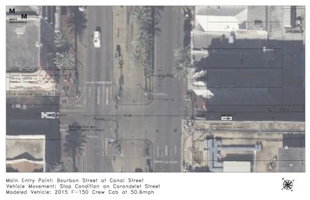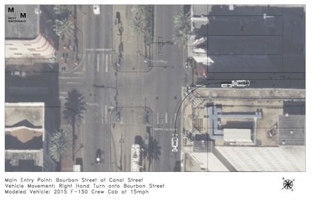 Two of the Bourbon Street attack scenarios modeled by city-contracted engineers involved entering the street in a straight line, without turning, after building up speed.